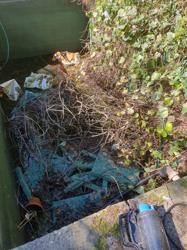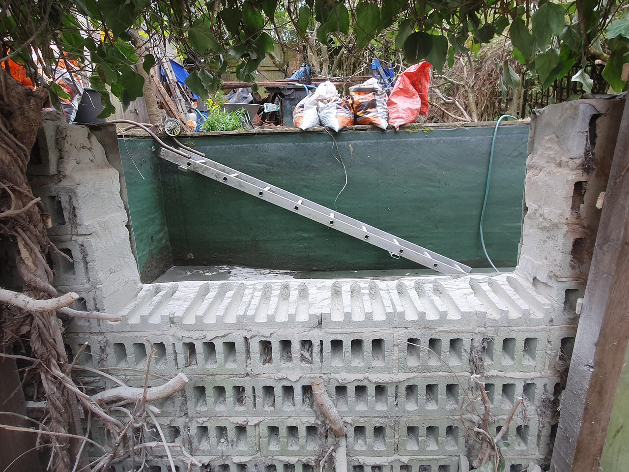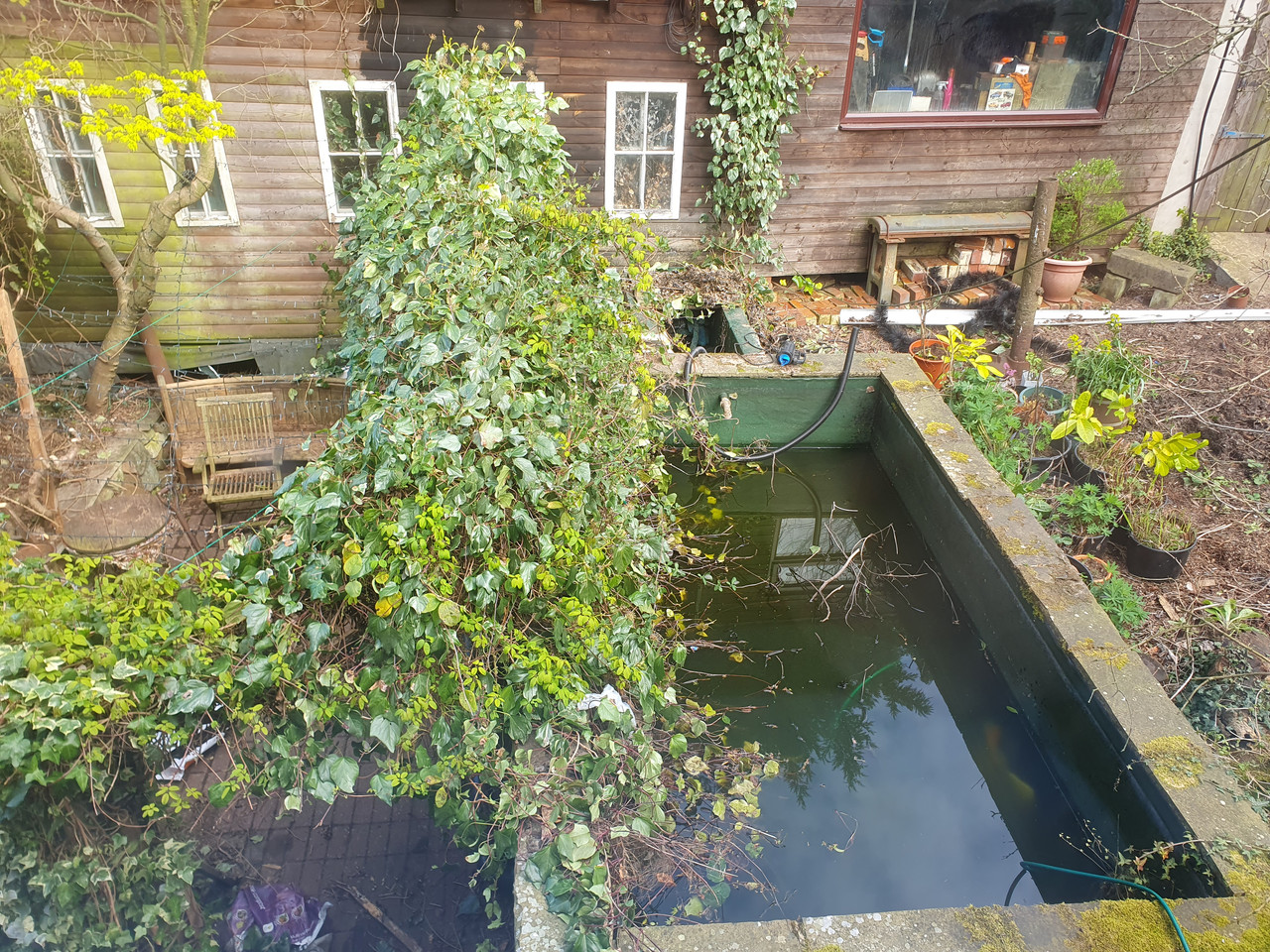 I built this pond maybe 17years ago, it is block work fibreglassed. About four years ago a fish died without me noticing and made the water go bad which killed all of my koi. My own fault and totally preventable. We'd had some of the fish for over 20years. It has sat since then just stagnating and a perfect home for fly larvae. Its time to make it presentable again.