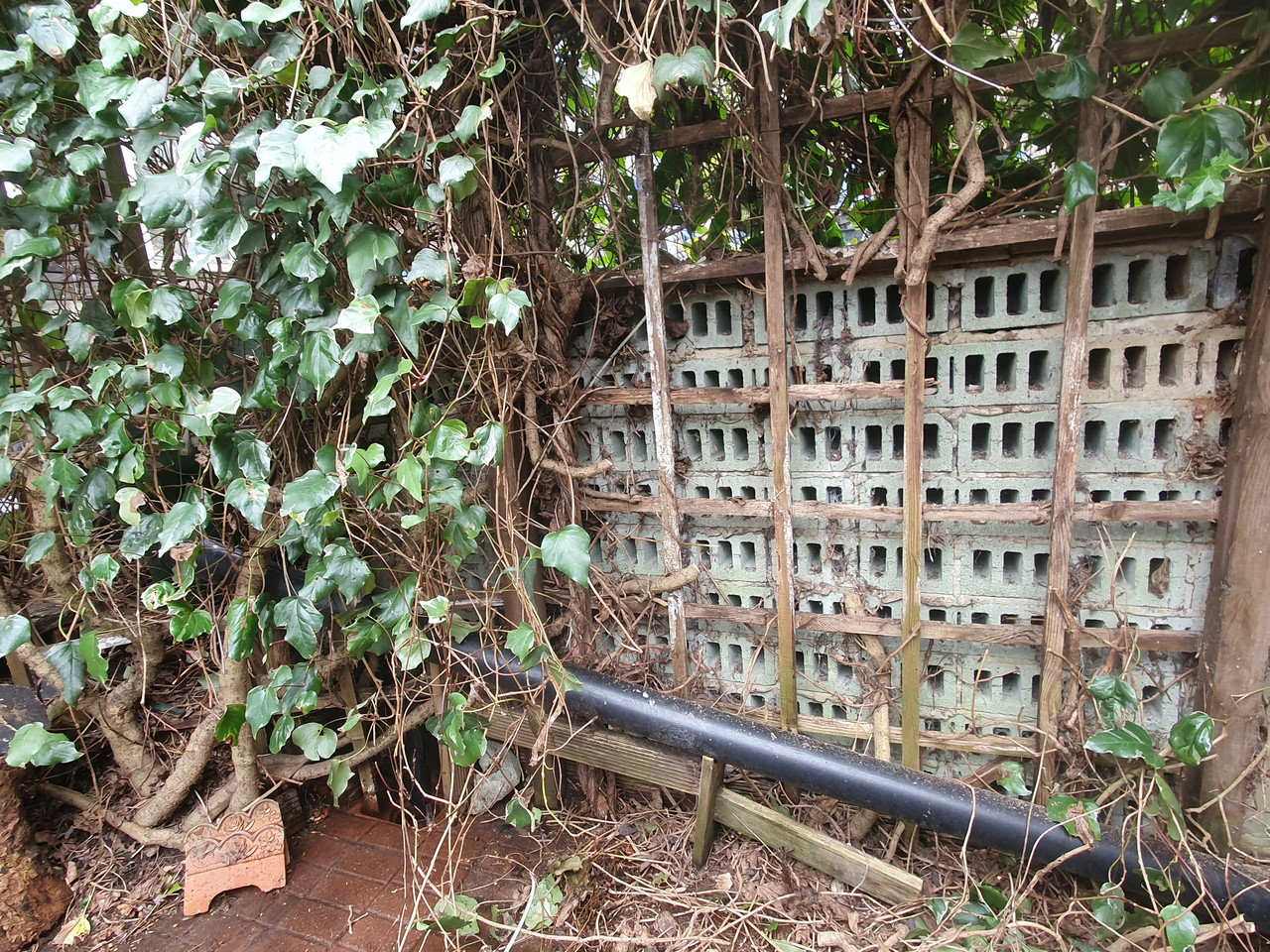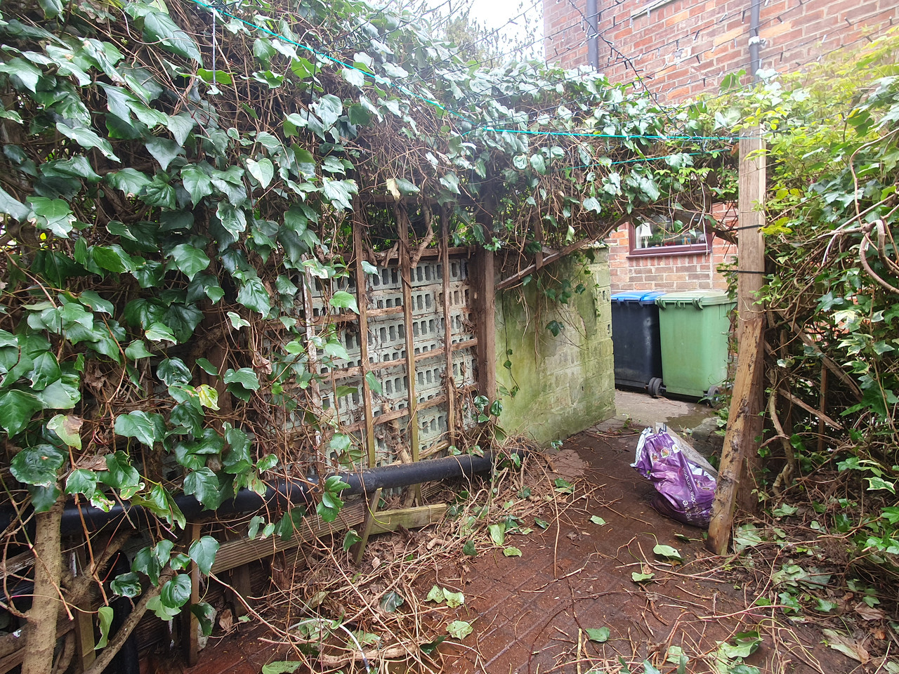 The plan is to add a window into this side, it used to be a nice little nook totally covered with ivy and clematis. It collapsed so had to be trimmed back. I'm also planning some kind of gazebo type thing so there might be some woodwork.